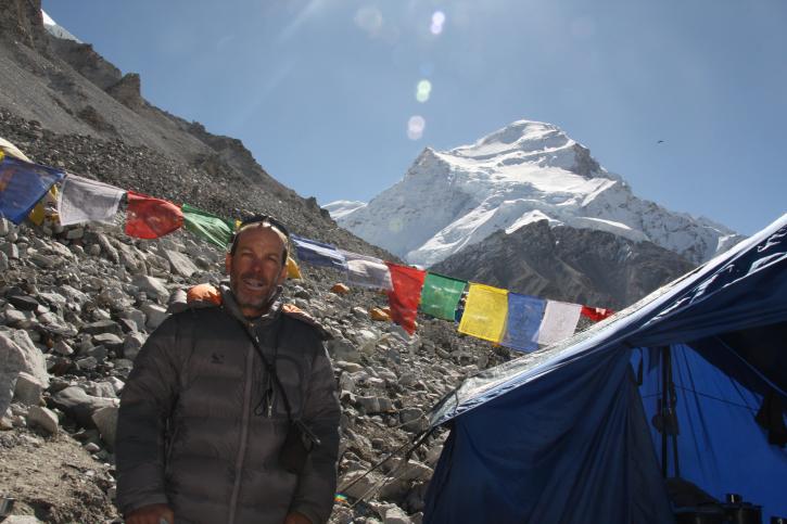 ...En 2.009 me involucro en un nuevo proyecto. Consiste en escalar dos montañas de más de "ochomil" metros en la cordillera del Himalaya en solo dos años. A la cima de una de ellas, el Cho-Oyu de 8.201 metros, la sexta montaña más alta del Planeta, asciendo el uno de octubre, por la ruta Austríaca, vertiente del Tibet.